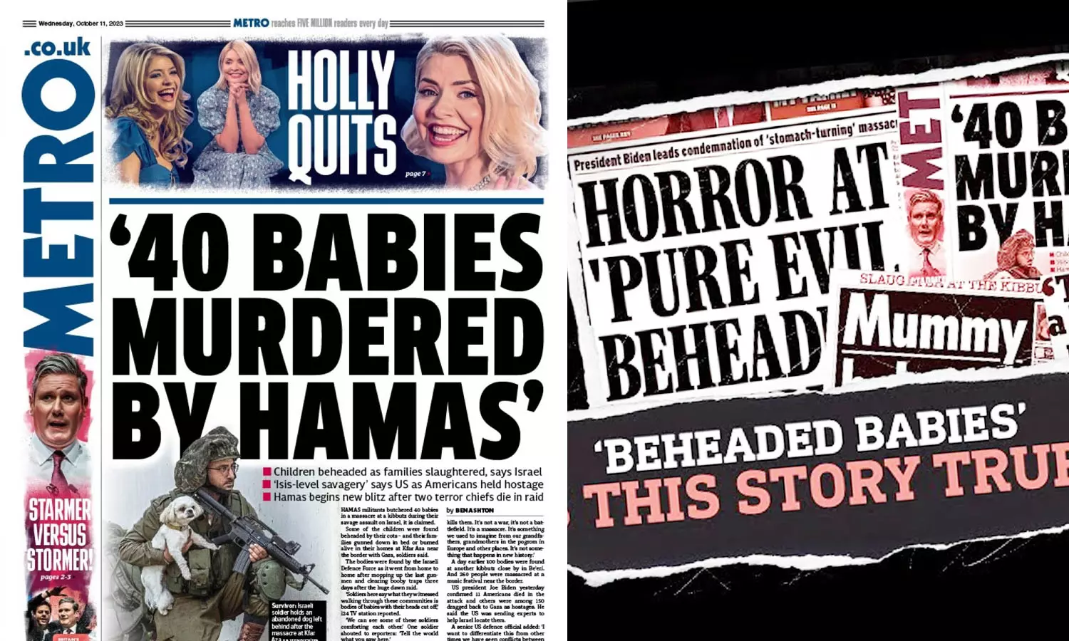 ലോകത്തുള്ള എല്ലാ ചാനലുകളിലും അത് പ്രൈംടൈം ചർച്ചകളായി... ഇന്ത്യയിൽ റിപ്പബ്ലിക്, എൻഡിടിവി അടക്കമുള്ള ചാനലുകളും വാർത്ത പ്രസിദ്ധീകരിച്ചു.പടിഞ്ഞാറൻ വാർത്താമാധ്യമങ്ങളുടെ ഒന്നാം പേജിൽ ആ വാർത്ത ഇടം പിടിച്ചു. 'നാൽപ്പത് കുഞ്ഞുങ്ങളെ ഹമാസ് കൊന്നു' എന്നാണ് ലണ്ടൻ പത്രം മെട്രോ ഒന്നാം പേജിൽ എഴുതിയത്. പക്ഷേ അതൊരു കള്ളമായിരുന്നെന്ന് ഒടുവിൽ ഇസ്രായേലിന് സമ്മതിക്കേണ്ടി വന്നു.