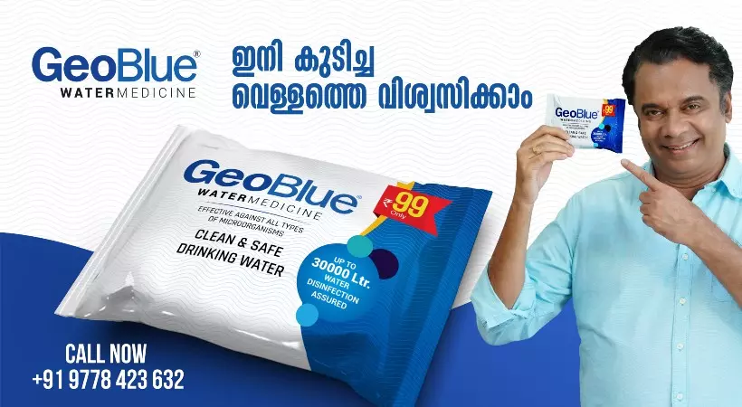 കുടിക്കുന്ന വെള്ളത്തില് ക്ലോറിന് ഉപയോഗിക്കാന് താത്പര്യമില്ലാത്തവരെ സംബന്ധിച്ചിടത്തോളം ആശ്വാസമാകുകയാണ് ജല അണുനശീകരണ ഉല്പ്പന്നമായ ജിയോ ബ്ലൂ വാട്ടര് മെഡിസിന്. ക്ലോറിനേക്കാള് അഞ്ചു മടങ്ങ് അണുനശീകരണ ശേഷിയുള്ള വാട്ടര് മെഡിസിനാണ് ജിയോ ബ്ലൂ. ഇത് ഉപയോഗിച്ച് 30,000 ലിറ്റര് ജലം വരെ അണുവിമുക്തമാക്കാന് കഴിയും. ചെലവ് വെറും 99 രൂപ മാത്രമാണ്. ലോകാരോഗ്യ സംഘടന അംഗീകരിച്ച ഗ്രീന് എ കെമിക്കലായ ക്ലോറിന്ഡയോക്സൈഡാണ് ജിയോ ബ്ലൂവില് അടങ്ങിയിരിക്കുന്നത്.