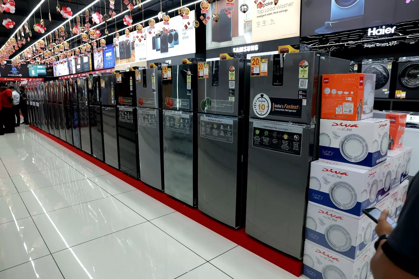 ഐഫോൺ, ആൻഡ്രോയിഡ് എന്നിവയ്ക്കു മികച്ച ഓഫറുകളാണ് ലഭിക്കുന്നത്. പ്രമുഖ ബ്രാൻഡുകളുടെ മൊബൈൽ ഫോണുകൾക്കെല്ലാം 5,000 രൂപ മുതൽ 12,000 രൂപ വരെ വിലക്കുറവ് ലഭിക്കും.