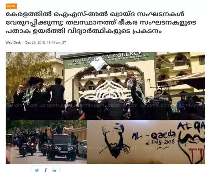 2018 മാര്‍ച്ചില്‍ വര്‍ക്കല സി.എച്ച് മുഹമ്മദ് കോയ മെമ്മോറിയല്‍ കോളജില്‍ യൂനിയന്‍ ഉദ്ഘാടനത്തിനെത്തിയ നടന്‍ സലിംകുമാറിനെ കറുത്ത വസ്ത്രം ധരിച്ചാണ് എം.എസ്.എഫ് പ്രവര്‍ത്തകര്‍ സ്വീകരിച്ചത്. കറുത്ത വസ്ത്രം ഐ.എസ് ബന്ധത്തിന്റെ സൂചനയാണെന്ന് ചിലര്‍ ആരോപിച്ചു. 'കേരളത്തില്‍ ഐ.എസ്-അല്‍ ഖാഇദ സംഘടനകള്‍ വേരുറപ്പിക്കുന്നു; തലസ്ഥാനത്ത ഭീകരസംഘടനയുടെ പതാക ഉയര്‍ത്തി വിദ്യാര്‍ത്ഥികളുടെ പ്രകടന'മെന്നായിരുന്നു ജനം ടിവി വാര്‍ത്ത(2018, ഡിസംബര്‍ 29). 2018 ഡിസംബര്‍ 31ലെ ഏഷ്യാനെറ്റ് പ്രൈംടൈം ചര്‍ച്ച ഇതായിരുന്നു. താനും കുട്ടികളുടെ അഭ്യര്‍ത്ഥനമാനിച്ച് കറുത്ത വസ്ത്രം ധരിച്ചിരുന്നതായി ചര്‍ച്ചയില്‍ പങ്കെടുത്ത സലിംകുമാര്‍ വെളിപ്പെടുത്തുന്നതുവരെ പ്രചാരണം തുടര്‍ന്നു.
