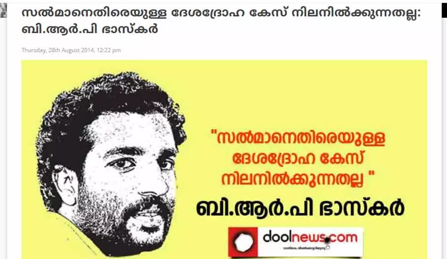 സല്‍മാന്‍ ജസ്റ്റിസ് ഫോറം ചെയര്‍മാന്‍ ബി.ആര്‍.പി ഭാസ്‌കറും പി.പി സത്യനും സജു കൊച്ചേരിയും ചേര്‍ന്ന് തിരുവനന്തപുരത്ത് നടത്തിയ പത്രസമ്മേളനത്തില്‍ വിതരണം ചെയ്ത കുറിപ്പില്‍ ദേശീയഗാനത്തെ അവഹേളിച്ചുവെന്ന് ആരോപിച്ച് രാജ്യദ്രോഹമെന്ന് മുദ്രചാര്‍ത്തുന്നത് നല്ല ഉദ്ദേശത്തോടെയല്ല എന്ന് വ്യക്തമാക്കുന്നതോടൊപ്പം പേരിലെ മുസ്‍ലിം ധ്വനിയാണ് സല്‍മാനെ ദേശദ്രോഹിയായി മുദ്രചാര്‍ത്താനുള്ള കാരണം എന്ന് വിലയിരുത്തുന്നുണ്ട് (സല്‍മാനെതിരെയുള്ള ദേശദ്രോഹ കേസ് നിലനില്‍ക്കുന്നതല്ല: ബി.ആര്‍.പി ഭാസ്‌കര്‍, ഡൂള്‍ ന്യൂസ്, ആഗസ്റ്റ് 28, 2014).