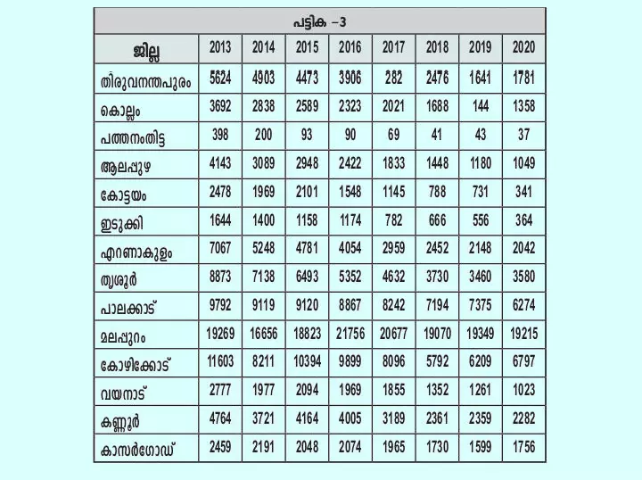 സര്ക്കാര്-എയ്ഡഡ് മേഖലയില് സീറ്റില്ലാത്തതിനാല് ഓപണ് സ്കൂള് സംവിധാനമായ സ്കോള് കേരളയെ ആശ്രയിക്കേണ്ടി വന്നവരുടെ 2013 മുതല് 2020 വരെയുള്ള കണക്കെടുത്താല് അതില് 70 ശതമാനവും മലബാര് ജില്ലകളില് നിന്നുള്ളവരാണെന്ന് കാണാം. പ്ലസ് വണ് പ്രതിസന്ധി ഏറ്റവുമധികം രൂക്ഷമായ മലപ്പുറം ജില്ലയില് നിന്നാണ് 31 ശതമാനം വിദ്യാര്ഥികള് ഓപണ് സ്കൂളില് അഡ്മിഷന് എടുക്കേണ്ടിവന്നിരിക്കുന്നത്. (പട്ടിക നോക്കുക)