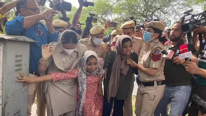 അഫ്രിന് ഫാത്തിമക്ക് ഐക്യദാര്ഢ്യം പ്രഖ്യാപിച്ച് ദല്ഹിയില് വിദ്യാര്ഥികള് നടത്തിയ സമരത്തെ പൊലീസ് നേരിടുന്നു.