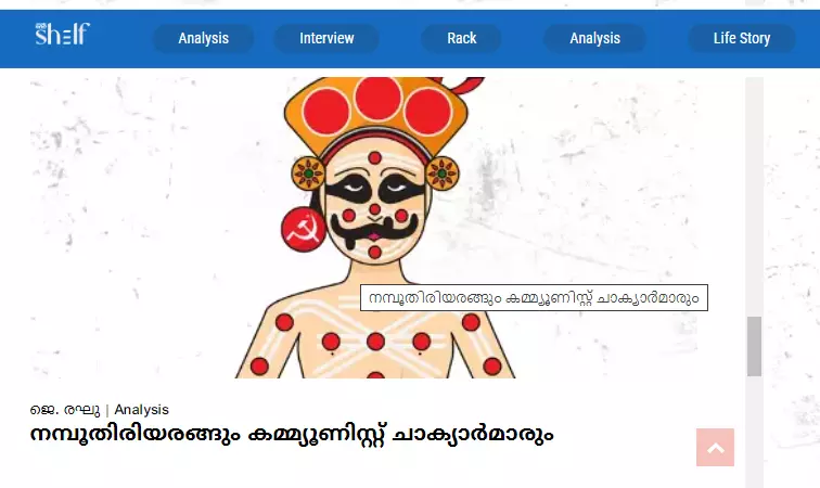 'നമ്പൂതിരിയരങ്ങും കമ്മ്യൂണിസ്റ്റ് ചാക്യാര്മാരും' ലേഖനത്തിന്റെ ലിങ്ക്: https://www.mediaoneonline.com/mediaone-shelf/analysis/political-satire-on-cpim-kerala-188684