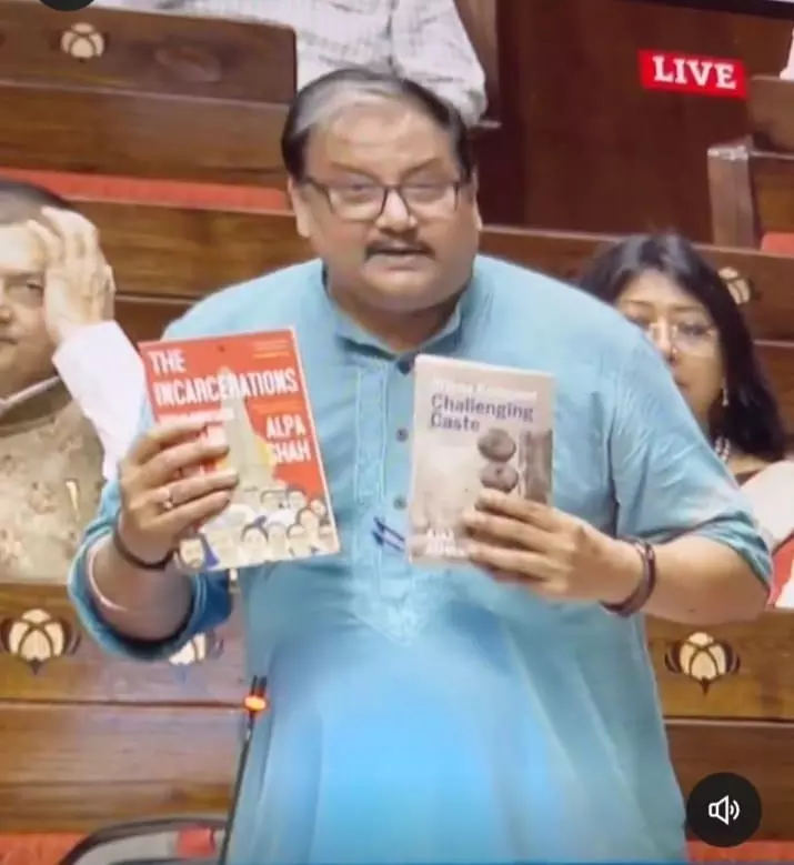 | പാര്ലമെന്റ് പ്രസംഗത്തില് അല്പ ഷായുടെ The Incarceration എന്ന പുസ്തകം ഉയര്ത്തിക്കാട്ടി ആര്.ജെ.ഡി അംഗം പ്രൊഫ. മനോജ് കുമാര് ഝാ ഭീമ കൊറേഗാവ് വിഷയം ഉന്നയിക്കുന്നു.