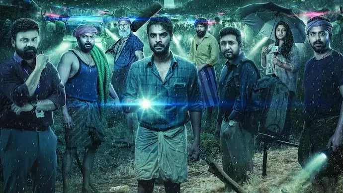 ടോവിനോ ചെയ്ത അനൂപ് എന്ന കഥാപാത്രം അന്ധനായ ഭാസേട്ടന് നല്കുന്ന കമന്റേറ്ററിയിലൂടെയാണ് മഴ തുടങ്ങുന്നത്. പിന്നീട് അത് ഓരോ കഥാപാത്രത്തിന്റേയും നിത്യ ജീവിതത്തിലൂടെ കടന്നു പോകുന്നു. പെരുമഴയില് വലിയ തിരമാലകളില് പെട്ടുലയുന്ന ബോട്ടില് നടുക്കടലില് പെട്ടുപോകുന്ന മത്സ്യത്തൊഴിലാളികളുടെ ഇടയില് ഒരിറ്റു കുടിവെള്ളം പോലുമില്ലെന്ന യാഥാര്ഥ്യമായും ചുറ്റുപാടും ചെളിവെള്ളം കുതിച്ചു വരുമ്പോഴും ഒരിറ്റു വെള്ളമില്ലാത്ത പൈപ്പുകളായും വെള്ളത്തിന്റെ വിവിധ ഭാവങ്ങള് സിനിമയില് നിറഞ്ഞു നില്ക്കുന്നു.
