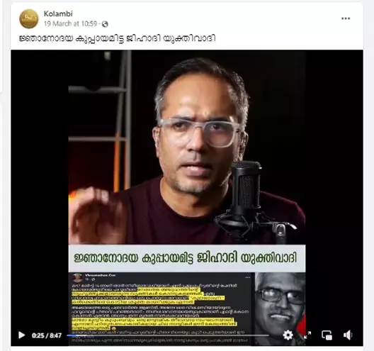 ടി.ആര്.എസ് ക്ലിപ്സ് എന്ന യൂ ട്യൂബ് ചാനലിലെ മാര്ച്ച് 12-ാം തിയ്യതി പ്രക്ഷേപണം ചെയ്ത റണ്വീര് ഷോയിലെ അഭിമുഖത്തിനിടെയാണ് ധര്മ്മ ഡിസ്പാച്ച് ചീഫ് എഡിറ്ററും സംഘ്പരിവാര് എഴുത്തുകാരനുമായ സന്ദീപ് ബാലകൃഷ്ണ മലപ്പുറത്തെ കുറിച്ച് വിദ്വേഷ പരാമര്ശം നടത്തിയത്. മലപ്പുറത്ത് ഒരു ഗാമമുണ്ടെന്നും അമുസ്ലിംകള്ക്ക് അവിടേക്ക് പ്രവശേനമില്ലെന്നും ഗ്രാമ കവാടത്തില് തന്നെ അമുസ്ലിംകളെ തടയുന്ന ബോര്ഡ് സ്ഥാപിച്ചിട്ടുണ്ടെന്നും അദ്ദേഹം ആധികാരികതയോടെ അവകാശപ്പെടുന്നു. ഇസ്ലാമിക നിയമം ബാധകമായ ഇന്ത്യന് ഭരണഘടനയ്ക്ക് സാധുതയില്ലാത്ത ഇസ്ലാമിക് ഗ്രാമം കൂടിയാണത്രെ അത്. സ്പോട്ടിഫൈ റാങ്കിങ്ങില് മൂന്നാം സ്ഥാനത്തുള്ള ചാനലിലൂടെയാണ് ഈ വിദ്വേഷപരാമര്ശം പുറത്തുവന്നത്. മലപ്പുറത്തെ കേന്ദ്രീകരിച്ച ആഖ്യാനങ്ങള് വസ്തുതാപരമായിരിക്കണമെന്ന് പ്രൊപ്പഗണ്ട നിര്മാതാക്കള് കരുതുന്നില്ല. സന്ദീപ് ബാലകൃഷ്ണയുടെ അതേ മാതൃകയാണ് മറ്റുള്ളവരും പിന്തുടരുന്നത്. മുസ്ലിം യൂത്ത് ലീഗ് മലപ്പുറം ജില്ലാ പ്രസിഡന്റ് ശരീഫ് കുറ്റൂര് വീഡിയോക്കെതിരേ പൊലിസില് പരാതി നല്കിയിട്ടുണ്ട്.