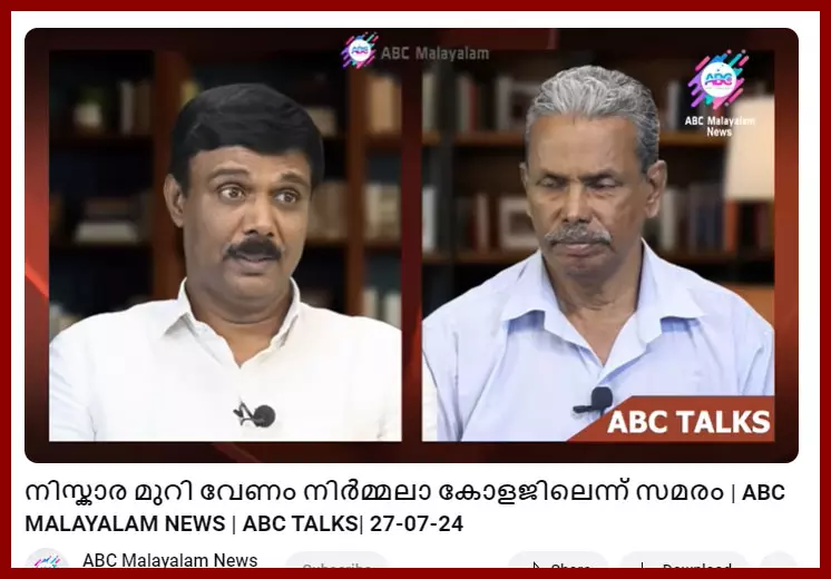 നിസ്കരിക്കാന് പ്രത്യേകം സ്ഥലം വേണമന്ന് ആവശ്യപ്പെട്ട് നിര്മല കോളജ് പ്രിന്സിപ്പലിനെ മണിക്കൂറുകളോളം ഓഫീസില് തടഞ്ഞുവച്ചത് എം.എസ്.എഫ്-എസ്.എഫ.്ഐ വിദ്യാര്ഥികളാണ്. കോളജിന് സമീപത്തുള്ള മസ്ജിദില് വെള്ളിയാഴ്ച നിസ്കരിക്കാന് പോകുന്നതിനു തടസ്സമില്ലാതിരിക്കെ ഇക്കാര്യത്തില് നിര്ബന്ധം പിടിച്ചത് ശരിയല്ല. നിസ്കരിക്കുന്നത് ശരിയല്ലെന്ന് അധ്യാപകന് വ്യക്തമാക്കിയിരുന്നു. കേരളത്തില് വളര്ന്നുവരുന്ന മതമൗലികവാദം വിദ്യാര്ഥികളിലേക്കും കുത്തിവയ്ക്കുന്ന ചിലരാണ് ഇതിനു പിന്നില്. ഒരു കോളജില് ഇത് അനുവദിച്ചു കഴിഞ്ഞാല് മറ്റെല്ലാ വിദ്യാലയങ്ങളിലും നിസ്കരിക്കാന് പ്രത്യേക സ്ഥലവും മസ്ജിദും വേണമെന്ന ആവശ്യം ഉയരുമെന്ന് ഉറപ്പാണ് (ദി കര്മന്യൂസ്, മതേതര കേരളത്തില് നിര്മലയുടെ ചരിത്രമുറി, ജൂലൈ 27, 2024).