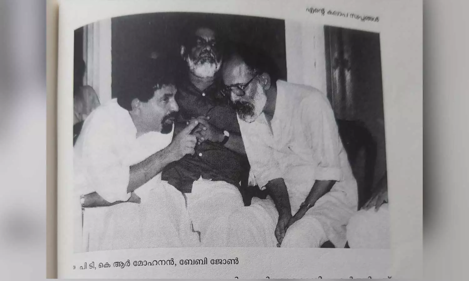 വേറൊരാൾ വരുന്നത് കണ്ടോ: "ഒരു തകരപ്പെട്ടിയുമായാണ് തൃശൂർ കിഴക്കേക്കോട്ടയിലെ കോസ്മോപോളിറ്റൻ ഹോസ്റ്റലിൽ ഒരു സായംസന്ധ്യക്ക് ഞാനെത്തിയത്. വരാന്തയിലൊരു ബെഞ്ച് കിടപ്പുണ്ടായിരുന്നു. പെട്ടി അരികിലായിവെച്ച് ഞാൻ ബെഞ്ചിലിരുന്നു. ഉമ്മ ആരും കാണാതെ എൻ്റെ കൈയ്യിൽ അഞ്ചു രൂപ വെച്ചു തന്നിരുന്നു, ഫീസിനു പുറമെ. ഞാൻ വരാന്തയിൽ നിശ്ശബ്ദനായി ഇരിക്കുമ്പോൾ ഒരു തോർത്തുമുണ്ട് തലയിൽ കെട്ടി, ലുങ്കിയുടുത്ത് തടിച്ച് ഉയരം കുറഞ്ഞ ഒരാളുണ്ട് പാട്ടുപാടി മുകളിൽനിന്ന് ഇറങ്ങിവരുന്നു. 'വെള്ളിച്ചിലങ്കയണിഞ്ഞുംകൊണ്ടൊരുപെണ്ണ്' എന്ന പാട്ടിനൊപ്പം സത്യൻ്റെ അംഗവിക്ഷേപങ്ങളോടൊപ്പം വന്നത് കെ.ആർ.മോഹനനായിരുന്നു. ബി.എസ്.സി ഫൈനൽ ഇയർ വിദ്യാർത്ഥിയാണ്. എന്നെ കണ്ടപ്പോൾ ചിരിച്ച് അടുത്തുവന്നു." ഞാൻ മോഹനൻ. കെ.എസ് രാമൻ മാഷെ മോനാണ്. നിന്നെ കണ്ടിട്ടുണ്ട്, നീ പഞ്ചായത്താഫീസിൽ ഊണ് കഴിക്കാൻ വരുമ്പോൾ, അവിടെ നായയെ കൊല്ലുന്നത് കാണാൻ ഞാൻ വന്നു നിൽക്കാറുണ്ടായിരുന്നു " ചാവക്കാട് സ്കൂളിൽ പഠിപ്പിക്കുമ്പോൾ ഞാൻ ഉച്ചക്ക് ഊണ് കഴിച്ചിരുന്നത് പഞ്ചായത്ത് എക്സിക്യൂട്ടീവ് ഓഫീസറായ അമ്മാവൻ്റെ ഓഫീസിൽ വെച്ചായിരുന്നു ".