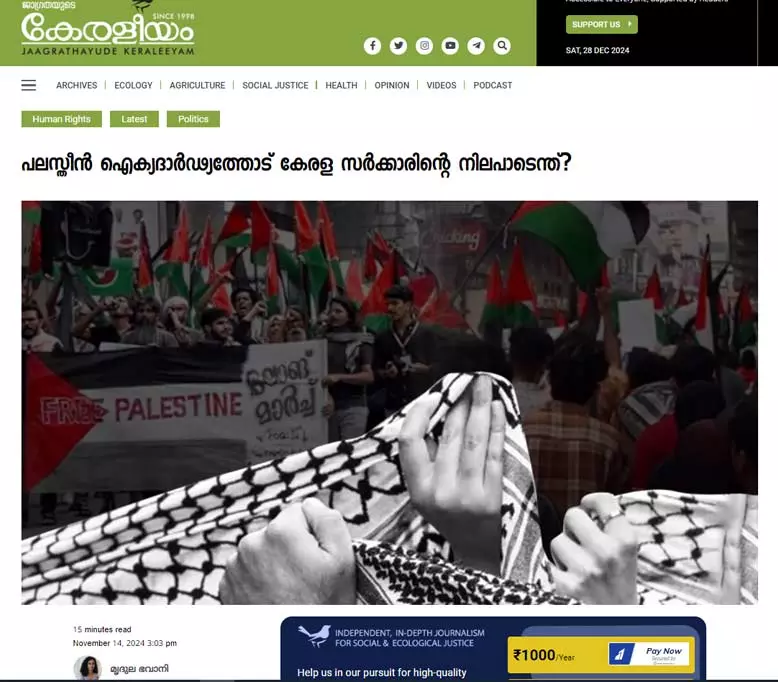 അതോടൊപ്പം ഫലസ്തീനില് ഒരു കൂലിപ്പട്ടാളത്തെപ്പോലെ കൂട്ടക്കൊല നടത്തുന്ന ഇസ്രായേലി സൈന്യത്തെയും ഫലസ്തീനിലെ വിമോചനപ്രസ്ഥാനങ്ങളെയും മനുഷ്യാവകാശത്തിന്റെ ഭാഷയില് സമീകരിക്കുന്നത് ഇസ്രായേലിനെ ന്യായീകരിക്കാന് മാത്രമാണ്.