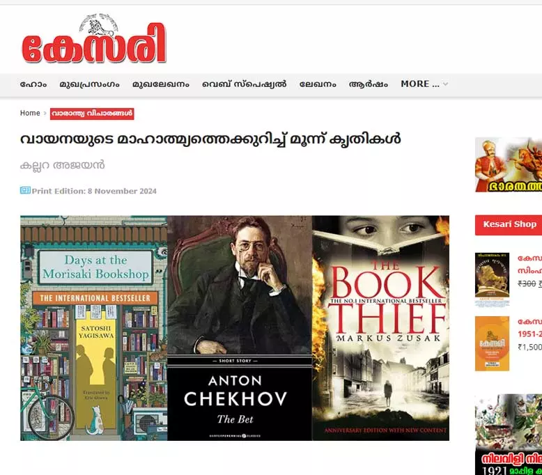 കേസരി വാരിക ഹിന്ദുത്വപ്രത്യയശാസ്ത്രത്തിന്റെ സംരക്ഷകരും പ്രചാരകരുമാണ്. കല്ലറ അജയനാണ് കേസരിയിലെ വാരാന്ത്യവിചാരങ്ങള് എന്ന പംക്തി എഴുതുന്നത്. അതില് പ്രത്യക്ഷപ്പെട്ട രണ്ട് പരാമര്ശങ്ങള് എടുത്തു ചേര്ക്കുന്നു, ചരിത്രവിരുദ്ധമായ വായനയെന്ന വിശേഷണത്തോടെ.