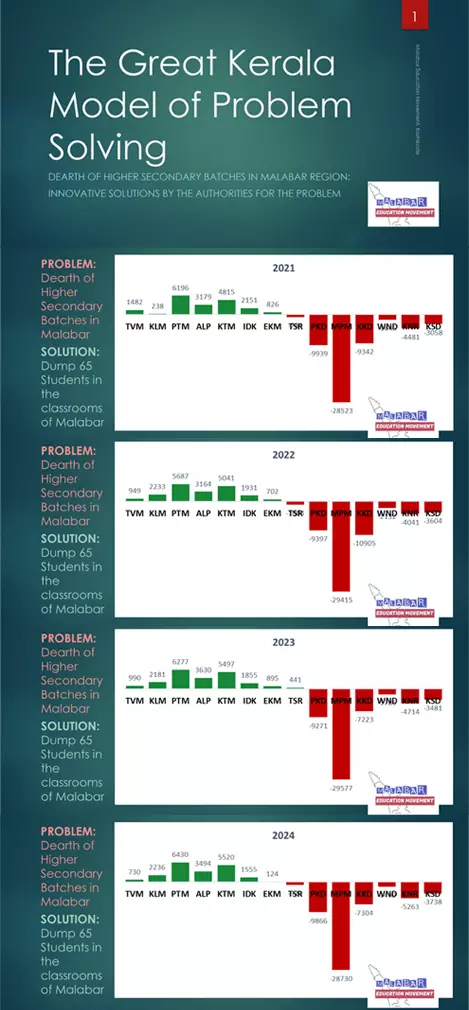2005 നു ശേഷം എസ്.എസ്.എല്.സി വിജയ ശതമാനം മലബാര് ജില്ലകളിലും 80 ശതമാനത്തിനും മുകളില് ആയിത്തുടങ്ങിയതോടെ അരലക്ഷത്തിലേറെ വിദ്യാര്ഥികള് ഓരോ വര്ഷവും ഉപരിപഠനസൗകര്യമില്ലാതെവന്നു. തെക്കന് ജില്ലകളിലാവട്ടെ മുന്വര്ഷത്തിലും കുറവ് വിദ്യാര്ഥികളാണ് തുടര് വര്ഷങ്ങളില് പത്താംക്ലാസ്സ് പൂര്ത്തിയാക്കിയത്. പുതുതലമുറയിലെ ജനസംഖ്യാ മാറ്റത്തെത്തുടര്ന്ന് സ്കൂളില് അഡ്മിഷന് നേടുന്ന കുട്ടികളുടെ എണ്ണത്തില് തന്നെ അവിടെ വലിയ കുറവാണുണ്ടായത്. തെക്കന് ജില്ലകളിലെ ചില സകൂളുകളില് ഒരൊറ്റ കുട്ടിയും അഡ്മിഷനില്ലാതെ പ്ലസ് വണ് ബാച്ചുകള് കാലിയായ നിലയിലേക്ക് വരെ കാര്യങ്ങളെത്തി. ഒരേ വിഷയത്തില് മലബാറില് സീറ്റ് പ്രതിസന്ധി വര്ഷംതോറും വര്ധിച്ചുവന്നപ്പോള് തെക്കന് ജില്ലകളില് വര്ധിച്ചത് കുട്ടികളില്ലാതെ വെറുതെ കിടക്കുന്ന ബാച്ചുകളാണ്. മാറിമാറി വന്ന ഇടത് വലത് ഭരണകൂടങ്ങള് അസന്തുലിതമായ ഈ സീറ്റുവിതരണവും ബാച്ച് സംവിധാനവും പഠിച്ച് ശാസ്ത്രീയമായത് പുനഃസംവിധാനിച്ച് പ്രശ്നം പരിഹരിക്കാന് യാതൊരു ശ്രമവും നടത്തിയതുമില്ല. പ്രശ്നവും പ്രതിസന്ധിയും മലബാറിന്റേതായതിനാല് ഉന്നത ഉദ്യോഗസ്ഥരോ പ്രമുഖ കേരള വിദ്യാഭ്യാസ വിചക്ഷണരോ ഈ ഭാഗത്തേക്ക് വേണ്ടത്ര ശ്രദ്ധിച്ചതുമില്ല. സാമൂഹിക അനീതിക്കൊപ്പം അശാസ്ത്രീയവും അസന്തുലിതവുമായ പ്ലസ് വണ് ബാച്ചുകളുടെ വീതംവെപ്പുമാണ് ഇന്ന് മലബാര് മേഖല അനുഭവിക്കുന്ന ഹയര് സെക്കന്ററി പ്രശ്നങ്ങളുടെ അടിവേര്.