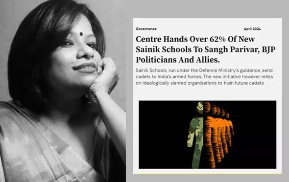 റിപ്പോര്ട്ടേര്സ് കലക്ടീവ് രാജ്യത്തെ സൈനിക സ്കൂള് സംബന്ധിച്ച് കഴിഞ്ഞ ദിവസം പ്രസിദ്ധീകരിച്ച അന്വേഷണ റിപ്പോര്ട്ട് സംഘ്പരിവാരങ്ങളുടെ ഗൂഢപദ്ധതികളെക്കുറിച്ച് വെളിപ്പെടുത്തുന്നതാണ്. അസ്താ സവ്യസാചി നടത്തിയ ഈ അന്വേഷണ റിപ്പോര്ട്ടില് പുതിയ സൈനിക സ്കൂളുകളില് 62%വും സംഘ്പരിവാറുമായി ബന്ധപ്പെട്ട് പ്രവര്ത്തിക്കുന്ന സംഘടനകളും വ്യക്തികളും ആണ് നടത്തുന്നതെന്ന് വ്യക്തമാക്കുന്നു. പ്രതിരോധ മന്ത്രാലയത്തിന്റെ മാര്ഗനിര്ദേശത്തിന് കീഴില് പ്രവര്ത്തിക്കുന്ന ഇത്തരം സൈനിക് സ്കൂളുകള് ഇന്ത്യയുടെ സായുധ സേനയിലേക്ക് കേഡറ്റുകളെ അയക്കുന്നതിനായി ഉദ്ദേശിക്കപ്പെട്ടിട്ടുള്ളതാണ്. ഭാവിയിലെ കേഡറ്റുകളെ പരിശീലിപ്പിക്കുന്നതിന് പ്രത്യയശാസ്ത്രപരമായി