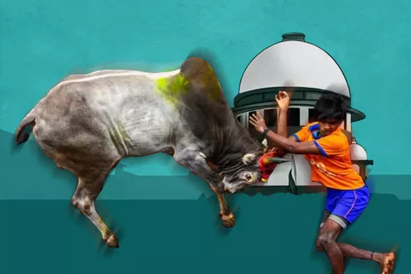 ജെല്ലിക്കെട്ട്: മനുഷ്യനും മൃഗവും തമ്മിലുള്ള ശക്തി പോരാട്ടം
