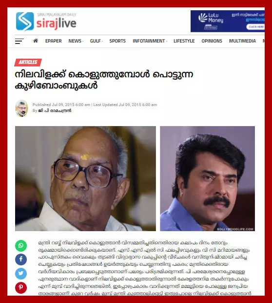 2015ലെ നിലവിളക്ക് വിവാദം: