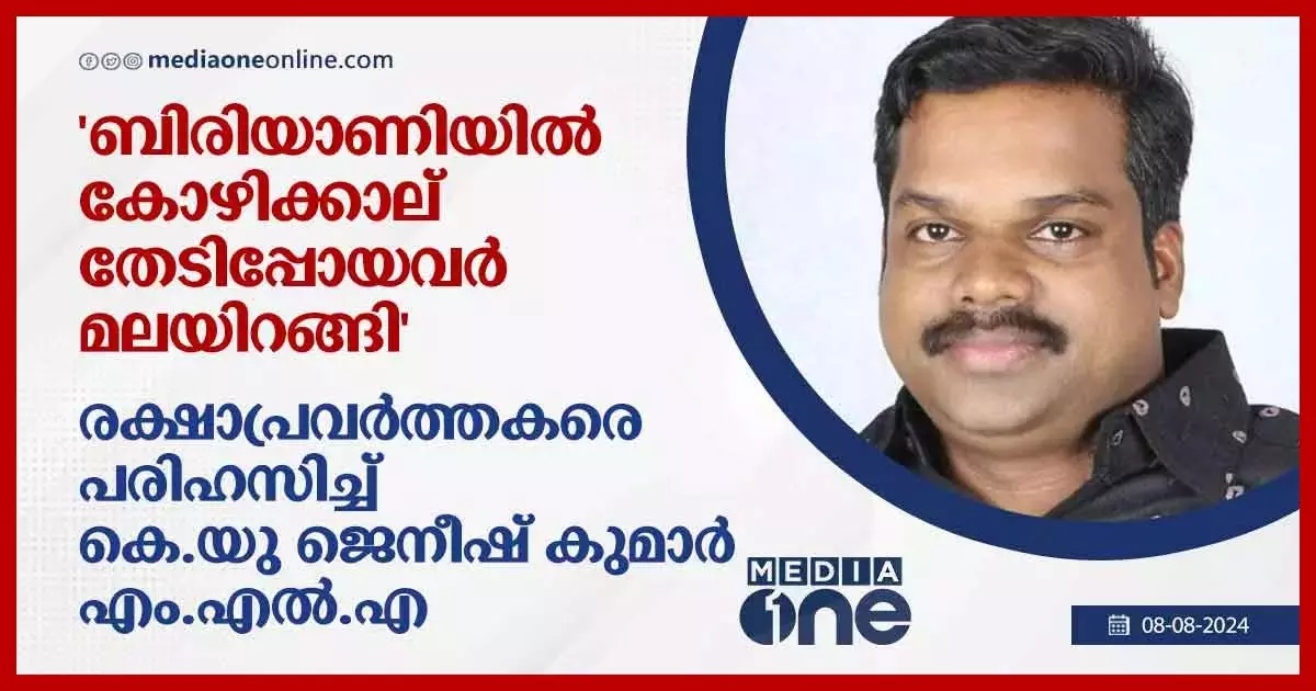 തൊട്ടടുത്ത ദിവസം ഭക്ഷണവിതരണത്തില് ചില പാളിച്ചകള് പറ്റി. സര്ക്കാര് തീരുമാനത്തിന്റെ പോരായ്മയായി ഇത് ചിത്രീകരിക്കപ്പെട്ടു. വിമര്ശനം കൂടുതല് ശക്തമായി. പിന്നീട് വിവിധ തലത്തിലെ ഇടപെടലുകള്ക്കുശേഷം ഭക്ഷണവിതരണം വീണ്ടും തുടങ്ങി. (ആഗസ്റ്റ് 4, 2024, റിപ്പോര്ട്ടര്). ഈ സമയത്ത് ടി. ജി മോഹന്ദാസിനു പിന്നാലെ കോന്നി എംഎല്എ കെ.യു ജെനീഷ് കുമാറും ഫേസ്ബുക്കിലൂടെ സന്നദ്ധപ്രവര്ത്തകരെ പരിഹസിച്ചു. 'ജീവന് തേടിപ്പോയവര് ഇന്നും അവിടുണ്ട്, ബിരിയാണിയില് കോഴിക്കാല് തേടിപ്പോയവര് മലയിറങ്ങി' എന്നായിരുന്നു അദ്ദേഹത്തിന്റെ പോസ്റ്റ് (കെ.യു ജെനീഷ് കുമാര്, എഫ്ബി, ആഗസ്റ്റ് 8, 2024). പോസ്റ്റിലെ ബിരിയാണി പ്രയോഗം ആരെയാണ് അദ്ദേഹം ഉദ്ദേശിച്ചതെന്നതിന് തെളിവാണ്.