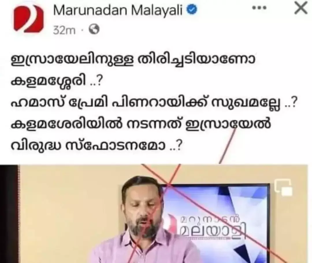 ഇതേ സമയത്താണ് മാതൃഭൂമി ന്യൂസ് മറ്റൊരു വാര്ത്ത പുറത്തുവിടുന്നത്, 'കളമശ്ശേരി സ്ഫോടനം, സോഷ്യല്മീഡിയ കേന്ദ്രീകരിച്ച് അന്വേഷണം' എന്ന ശീര്ഷകത്തില്. ബോംബ് സ്ഫോടനമാണെന്ന് പൊലീസ് സ്ഥിരീകരിച്ച വിവരമാണ് റിപ്പോര്ട്ടര് പങ്കുവയ്ക്കുന്നത്. ബോംബാക്രമണമാണെന്നും ഭീകരാക്രമണമാണെന്നും റിപ്പോര്ട്ടര് മാറിമാറിപ്പറഞ്ഞു. കളമശ്ശേരിയിലെ സ്ഫോടനവും ഭീകരരുടെ മോഡസ് ഓപറാന്റിയും താരതമ്യം ചെയ്ത് ഒന്നിലധികം സ്ഫോടനകള് നടത്തുക ഭീകരരുടെ ശൈലിയാണെന്ന് അദ്ദേഹം കണ്ടെത്തി!