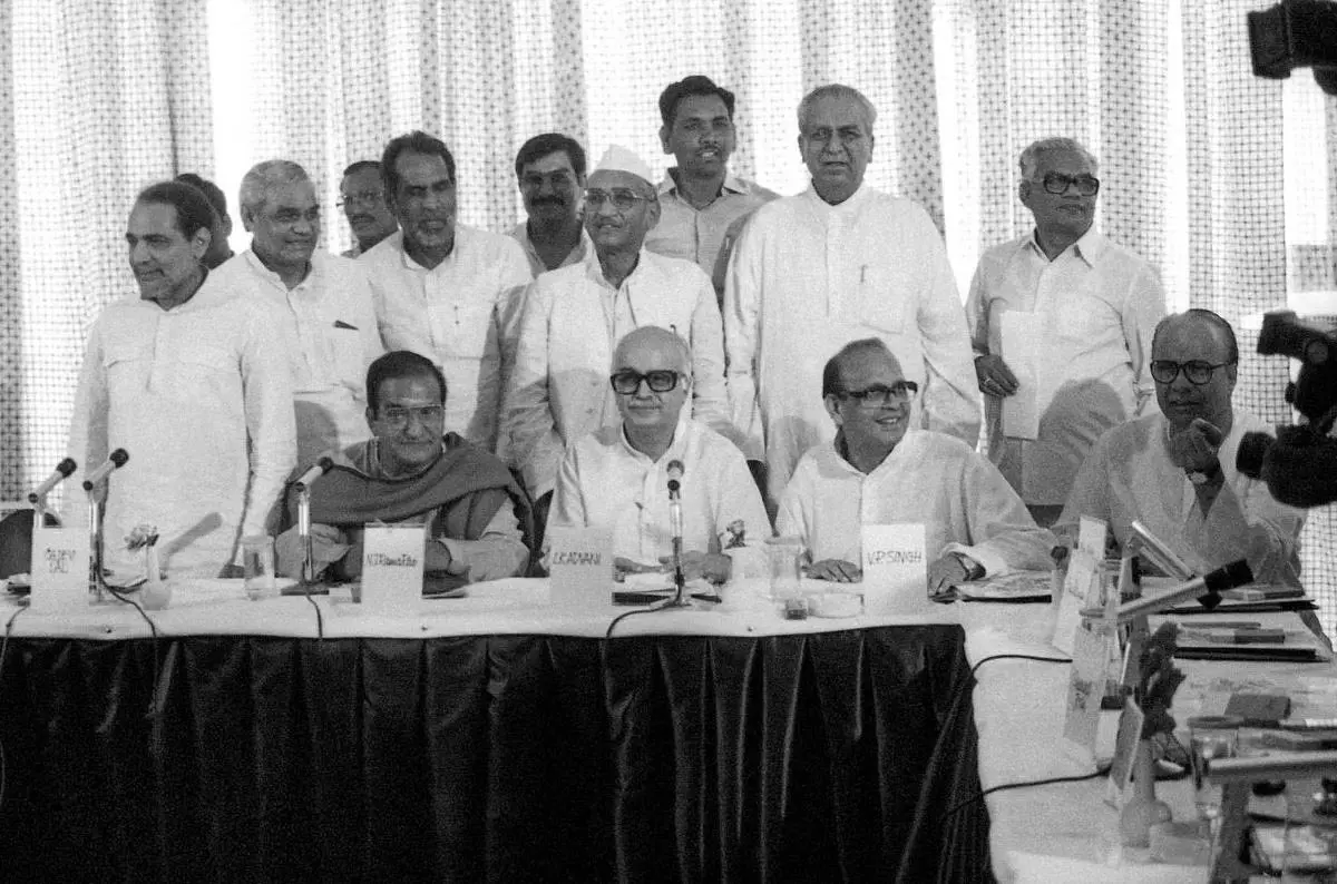1989 ല് ജനതാദള്, ബി.ജെ.പി എന്നിവയുമായി നേരിട്ട് സഖ്യമില്ലെങ്കിലും പരസ്പരം മത്സരിക്കാതെ കോണ്ഗ്രസിനെ പരാജയപ്പെടുത്താന് ഏകോപിത നിലപാടില് തെരഞ്ഞെടുപ്പിനെ നേരിട്ടു. ആ തെരഞ്ഞെടുപ്പില് കോണ്ഗ്രസിനെ പരാജയപ്പെടുത്താനും അതുവരെ രണ്ട് സീറ്റുള്ള ബി.ജെ.പിക്ക് 89 സീറ്റുകളായി ലോക്സഭയില് അംഗസംഖ്യ ഉയര്ത്താനും കഴിഞ്ഞത് ജനതാദളും ഇടതുപാര്ട്ടികളും തെലുങ്കുദേശം ഡി.എംകെ അടക്കമുള്ള പ്രാദേശിക പാര്ട്ടികളും ചേര്ന്ന ദേശീയ മുന്നണിയുടെ പിന്തുണയാണ്.