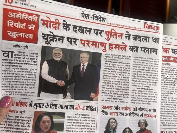 മോദിയുടെ നിര്ദേശ പ്രകാരം ഉക്രൈന് യുദ്ധം നിര്ത്തിവെക്കപ്പെട്ടു (വാര് രുകുവാ ദി പാപ്പ ) എന്ന് പരസ്യ വീഡിയോ നിര്മിച്ച് പ്രചരിപ്പിക്കുകയും ചെയ്തു ബി.ജെ.പി. അന്താരാഷ്ട്ര തലത്തില് നിരന്തരമായി തിരിച്ചടികള് ലഭിച്ചുകൊണ്ടിരിക്കുമ്പോഴും നിര്ല്ലജ്ജം നുണകള് പടച്ചുവിടാന് യാതൊരു മടിയും മോദി പരിവാരങ്ങള്ക്കില്ല.