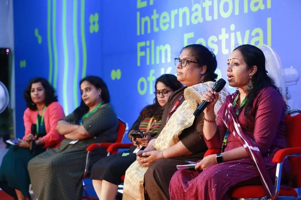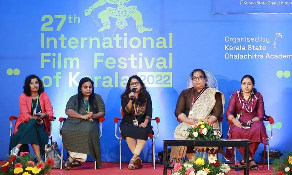 |സ്ത്രീകള് ക്യാമറക്ക് മുന്നിലെ ഒരു കച്ചവട വസ്തുവായിട്ടാണ് സിനിമയില് അവതരിപ്പിക്കുന്നത്. എന്നാല്, ഞങ്ങള്ക്ക് സിനിമയും തിരക്കഥയും, എഡിറ്റുമൊക്കൊ ചെയ്യാന് പറ്റും എന്ന് പറഞ്ഞുകൊണ്ടാണ് ഇപ്പോള് സ്ത്രീകള് മുന്നോട്ടുവരുന്നത്. | Open Forum - IFFK 2022