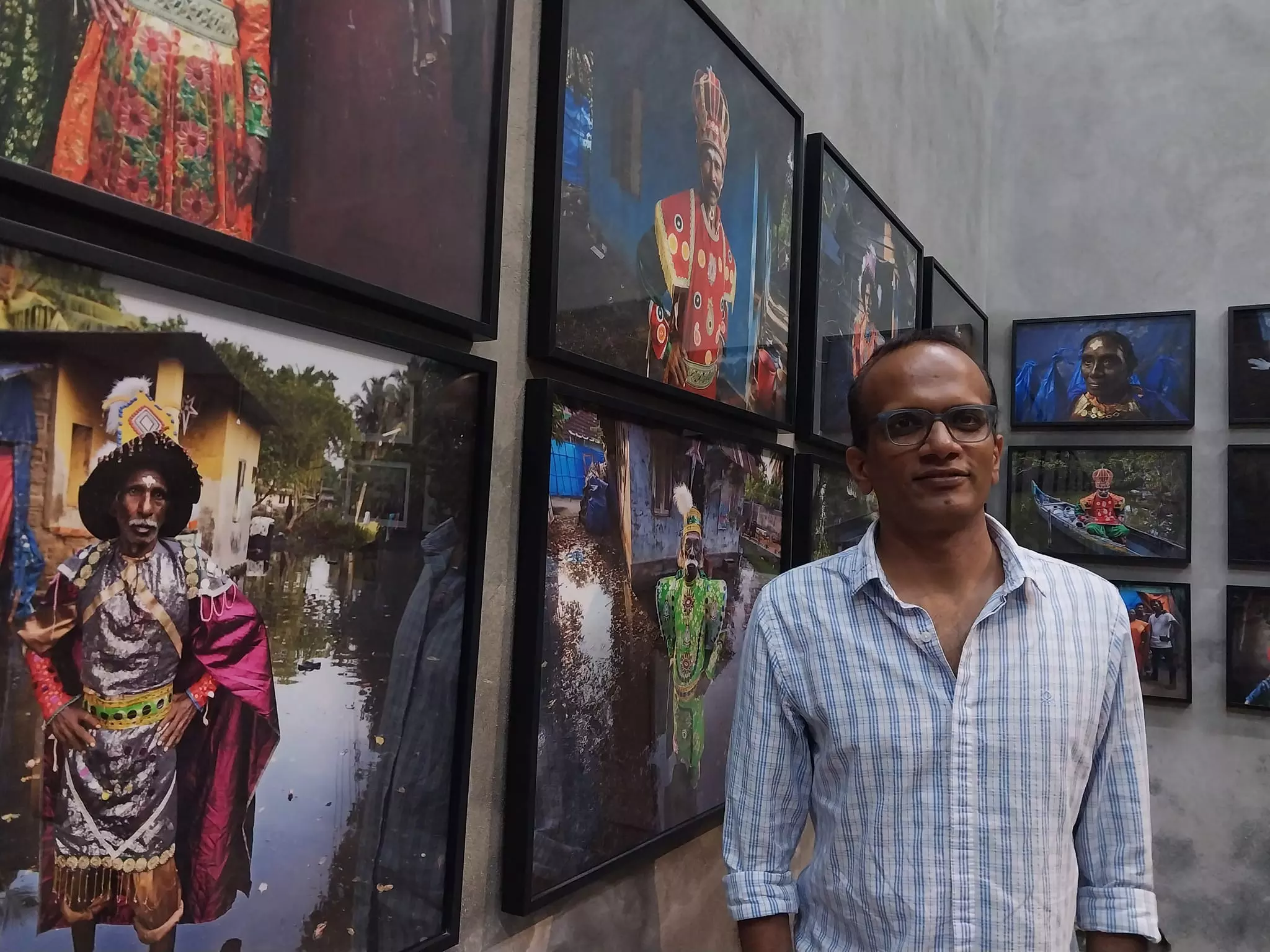 അതിനുള്ള ഉത്തരം പറയണമെങ്കില് ഈ കലാകാരന്മാരിലേക്ക് ഞാന് എത്തിപ്പെട്ടതിനെക്കുറിച്ചും അവരുടെ ജീവിത പരിസരങ്ങളിലൂടെ യാത്ര ചെയ്തതിനെക്കുറിച്ചും പറയണം. 2015 ലെ ഗോതുരുത്തിലെ ചുവടി ഫെസ്റ്റിലാണ് ആദ്യമായി ചവിട്ടുനാടകം കാണുന്നത്. അപ്രത്യക്ഷമായിക്കൊണ്ടിരിക്കുന്ന ആ കലാരൂപത്തെ പുതിയ ലോകത്തിന് പരിചയപ്പെടുത്താനും ആ കലാകാരന്മാര്ക്ക് വേദി ലഭ്യമാക്കാനുമായിരുന്നു അഞ്ചുദിവസം നീണ്ടുനിന്ന ആ ഫെസ്റ്റിവല്. അന്നു കണ്ട ചവിട്ടുനാടകങ്ങള് സത്യത്തില് എന്നെ വളരെ എക്സൈറ്റ് ചെയ്യിച്ചു. ഞാന് അവരോട് സംസാരിക്കുകയും ചിത്രമെടുക്കുകയും ചെയ്തു. അവിടെ ദിവസേന മേക്കപ്പ് ചെയ്യാനായി എത്തിയിരുന്ന ഒരു ആളുണ്ടായിരുന്നു. ഓരോ ദിവസവും ഞാന് ചിത്രമെടുക്കുന്നതിനിടെ അദ്ധേഹം എന്നോട് നാടക ലോകവുമായി ബന്ധപ്പെട്ട കുറെ കഥകള് പറഞ്ഞു. അയാള് പഴയ ബാലെ ആര്ട്ടിസ്റ്റ് കൂടിയായിരുന്നു. സംസാരത്തിനിടെ ഇരുപതോളം ചവിട്ടു നാടക കലാകാരന്മാരെ അദ്ദേഹം അണിയിച്ചൊരുക്കി.