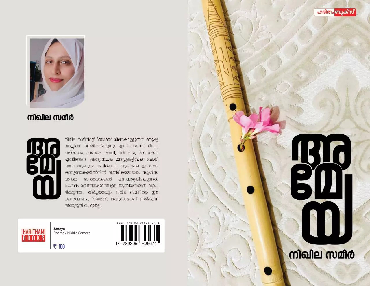 സൂഫിസത്തിന്റെ സ്വാധീനമുള്ള ഒരു കവിതാ പുസ്തകമാണ് ഇന്ന് വായിച്ചത്. നിഖില സമീറിന്റെ 'അമേയ'. 59 കവിതകള് ഉണ്ടിതില്. അവയൊക്കെ ജീവിതം തൊടുന്നു. എന്തുകൊണ്ടാണെന്നറിയില്ല ചില പുസ്തകങ്ങള് വായിക്കുമ്പോള് പിന്നണിയില് ഒരു പാട്ട് വന്ന് നിറയും. ഇത് വായിച്ചു കൊണ്ടിരുന്നപ്പോള് ബാബുക്കയുടെ 'ഒരു പുഷ്പം മാത്രമെന്' പിന്നണിയില് ആരോ പാടിക്കൊണ്ടിരുന്നു.