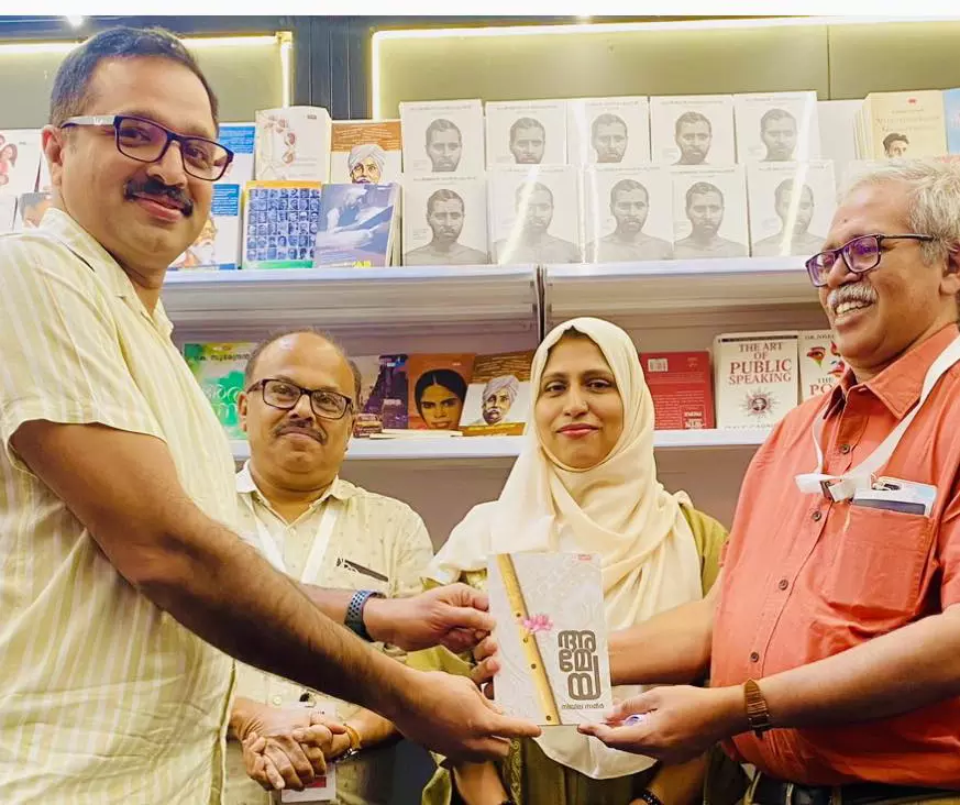 റിയാദ് അന്താരാഷ്ട്ര പുസ്തകമേളയില് വെച്ച് നടന്ന 'ആമേയ'യുടെ പ്രകാശന ചടങ്ങ്