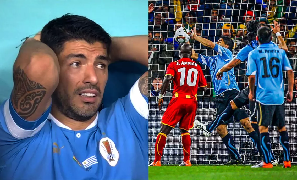 |2010 ജൂലൈ മൂന്നിന് ജൊഹാനസ്ബർഗിൽ വെച്ച്, എക്സ്ട്രാ ടൈമിന്റെ അവസാന നിമിഷങ്ങളിൽ ഘാനയുടെ ഗോളെന്നുറച്ച ശ്രമം ഗോൾലൈനിൽ വെച്ചു ലൂയിസ് സുവാരസ് കൈകൊണ്ട് തടഞ്ഞത് ഓർമ കാണാത്തവരുണ്ടാവില്ല.