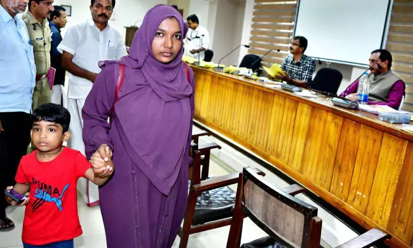 മനുഷ്യാവകാശ കമീഷന് സിറ്റിങ്ങില് പരാതി നല്കിയശേഷം മടങ്ങുന്ന ഹര്ഷിന
