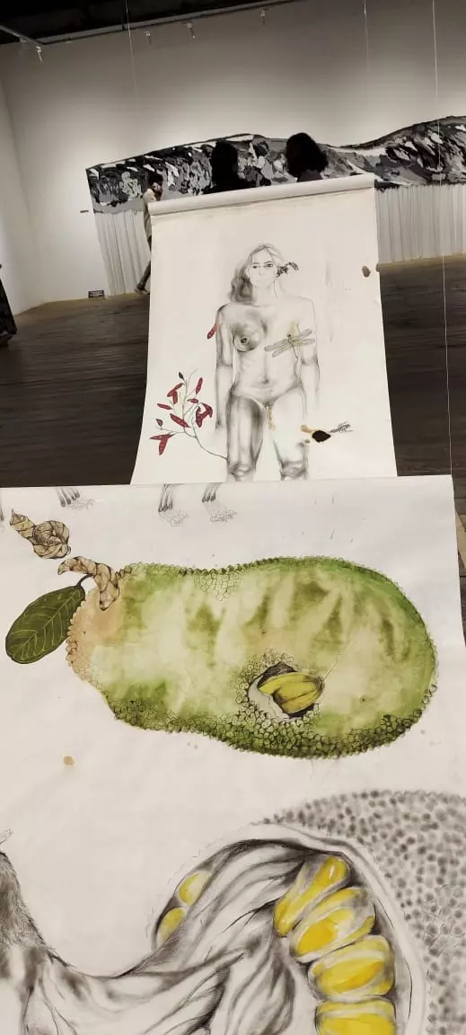 ബിനാലെയില് പ്രദര്ശിപ്പിച്ച ചിത്രങ്ങള് സംവദിക്കുന്നത് വേദനയെക്കുറിച്ചാണ്. ശരീരത്തെക്കുറിച്ചാണ്. ബോഡിയെക്കുറിച്ചും ബോഡി ഷെയിമിങ്ങിനെയും കുറിച്ചാണ്. കുട്ടിക്കാലത്തെ ഏറ്റവും വലിയ തലവേദനകളില് ഒന്നായിരുന്നു ബോഡി ഷെയിമിങ്. മെലിഞ്ഞത്, കറുത്തത്, നീളമില്ലാത്തത്... സ്വന്തം സ്വത്വത്തെ തന്നെ നഷ്ടപ്പെടുത്തിക്കൊണ്ടാവും നമ്മള് അതൊക്കെ കേട്ട് നിക്കുന്നത്.