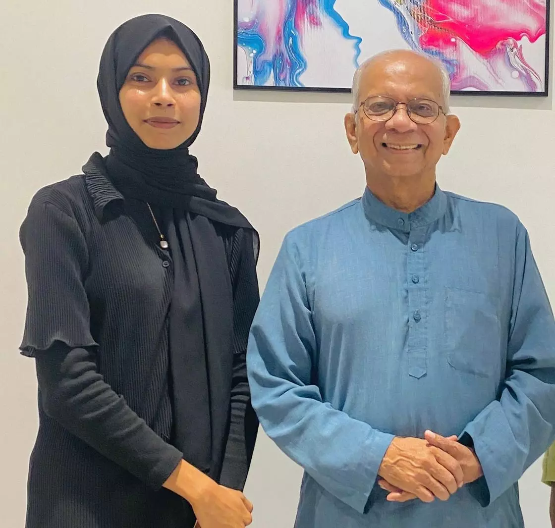 സന സുബൈര് ഫാ. സെഡറിക് പ്രകാശിനോടൊപ്പം