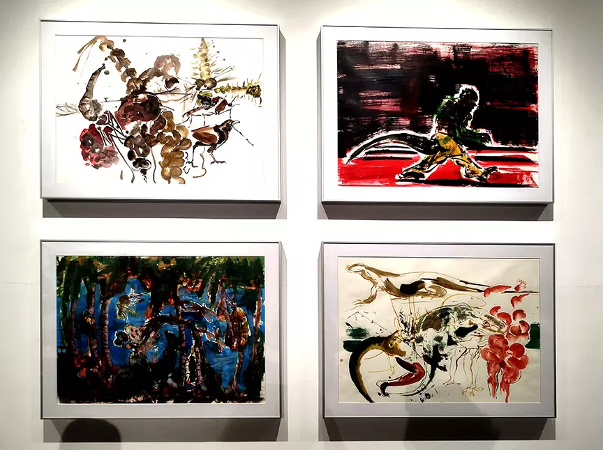 മുന്പ് ചിത്രങ്ങളില് വളരെയധികം നിറങ്ങള് ഉപയോഗിച്ചിരുന്നു. മോണോക്രൊമാറ്റിക് ആയ ഒരു ശൈലി സ്വീകരിക്കുമ്പോള് ദലിത് സമൂഹത്തിന്റെ യഥാര്ഥ ജീവിതം മാത്രമായിരുന്നു മനസ്സില്. നിറങ്ങള് വളരെയധികം സങ്കീര്ണമാണ്. ഒരേ ചിത്രത്തിന് തന്നെ വ്യത്യസ്തമായ പല വ്യാഖ്യാനങ്ങളും പകര്ന്നു നല്കാന് നിറങ്ങള്ക്ക് സാധിക്കും. അവയെ നിയന്ത്രിക്കുക പ്രയാസമാണ്. ഞാന് ശ്രദ്ധിക്കുന്നത് വരക്കുക അഥവാ ആലേഖനം ചെയ്യുക എന്ന പ്രക്രിയയെയാണ്. അതിനാല് തന്നെ 'പ്രേതഭാഷണത്തില്' കൂടുതലും കാണാന് സാധിക്കുക സ്ട്രോക്കുകളും മര്ക്കുകളുമാണ്. ചിത്രം പൂര്ണമായും ഫില് ചെയ്യുക എന്നതിനെ പറ്റി ചിന്തിച്ചിട്ടില്ല. സ്ട്രോക്കുകള് ആയതുകൊണ്ട് തന്നെ തുടക്കവും അവസാനവും ഇത്തരം ചിത്രങ്ങള്ക്ക് വലിയൊരു പ്രശ്നം തന്നെയാണ്.
