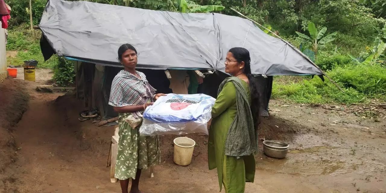 | അമ്മിണിയുടെ നേതൃത്വത്തില് ഊരുകളില് ടാര്പോളിന് ഷീറ്റുകള് വിതരണം ചെയ്യുന്നു
