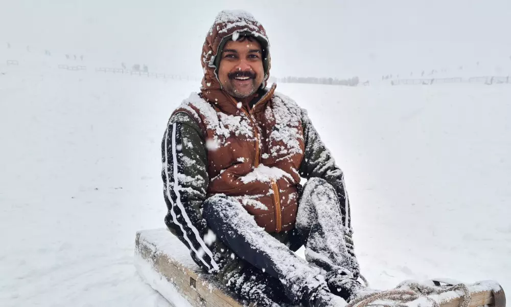 മൈനസ് നാല് ഡിഗ്രി തണുപ്പിൽ മഞ്ഞ് വീഴ്ച തുടങ്ങിയിരുന്നു..വീൽ ചെയർ ഉരുട്ടാൻ പറ്റാത്തത്ര മഞ്ഞ് വീണ് കിടക്കുന്നതിനാൽ സഹയാത്രികരായ ഫാഇസും മൻസൂറും എന്നെ എടുത്ത് കൊണ്ട് പോവുകയായിരുന്നു. പക്ഷെ, ഒരു പാട് ദൂരം എടുത്ത് മഞ്ഞിലൂടെ നടക്കാൻ പ്രയാസമായത് കൊണ്ട് എെസിലൂടെ വലിച്ച് കൊണ്ട് പോകുന്ന മരവണ്ടിയിൽ ഇരിക്കാൻ തീരുമാനിച്ചു. ആയിരം രൂപ കൊടുത്തായിരുന്നു ആ യാത്ര. മൂന്ന് മണിക്കൂറോളമാണ് എന്നെയും കൊണ്ട് എെസിലൂടെ വണ്ടി വലിച്ചത്. ഐസ് നിറഞ്ഞ സ്ട്രോബറി പാടവും, ഗോൾഫ് ഗ്രൗണ്ടുമെല്ലാം സമ്മാനിച്ചത് വർണനകൾക്കതീതമായ ദൃശ്യ വിരുന്നായിരുന്നു .