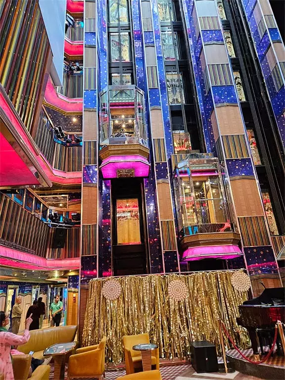 ''നോക്കിയേ, ഈ കപ്പലില് ഗ്രീക്ക് തീമാണെന്നു തോന്നുന്നു'' ചുറ്റുമുള്ള മതിലുകളില് വരച്ചിട്ട പെയിന്റിങ്ങുകളെ നോക്കി സഹോദരീപുത്രി പറഞ്ഞു. തന്നേക്കാള് വലിയ പെട്ടിയുമുരുട്ടി ക്ഷീണമെല്ലാം മറന്നു ഏഴു വയസ്സുകാരി മകള് തുള്ളിച്ചാടി നടന്നു. ടിക്കറ്റ് നോക്കി ഞങ്ങള്ക്കനുവദിച്ചു തന്ന മുറികള് രണ്ടാം നിലയിലാണെന്ന് മനസ്സിലാക്കി ലിഫ്റ്റിനുള്ള തിരച്ചിലായി. ഒരു നിലയില് ആറ് ലിഫ്റ്റുകള് വീതമുള്ളത് കൊണ്ടായിരിക്കാം അധികം അന്വേഷിച്ചു നടക്കേണ്ടി വന്നില്ല. ചുരുണ്ട താടിയുള്ള ഒരു ഗ്രീക്ക് ദൈവത്തിന്റെ തലയാണ് എല്ലാ ലിഫ്റ്റുകളുടെ വാതിലിലുമുള്ളത്. ലിഫ്റ്റ് അടക്കുമ്പോള് ഇരുതലകളും പരസ്പരം നോക്കി നില്ക്കുന്നതു പോലെത്തോന്നും. ലിഫ്റ്റിന് തന്നെ എന്തൊരു ഭംഗിയാണ്.