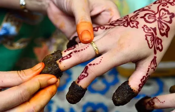 ഉമ്മ എപ്പോഴും പെരുന്നാള് തലേന്ന് തലനിറയെ എണ്ണ പൊത്തി മേലൊക്കെ തേച്ചുപിടിച്ചു കുളിമുറിയില് ഇരുത്തും. ഓരോരുത്തരെയും തേച്ചു കുളിപ്പിച്ച് ജീരക കഞ്ഞിയും കുടിപ്പിക്കും. പിന്നെ മൈലാഞ്ചി ഇടലാണ്. രണ്ടിലകളും ഒരു പൂവും നീളത്തില് ഒരു തണ്ടും അടിയില് തൃകോണാകൃതിയില് ഒരു ചട്ടിയും ഉള്ള ഒരു ചെടിയാണ് ഉമ്മ സ്ഥിരം ഇടാറുള്ള ഡിസൈന്. അങ്ങനെ മാത്രമേ മൈലാഞ്ചി കൊണ്ട് വരയ്ക്കുവാന് പറ്റൂ എന്നായിരുന്നു ഞാനും കരുതിയത്.