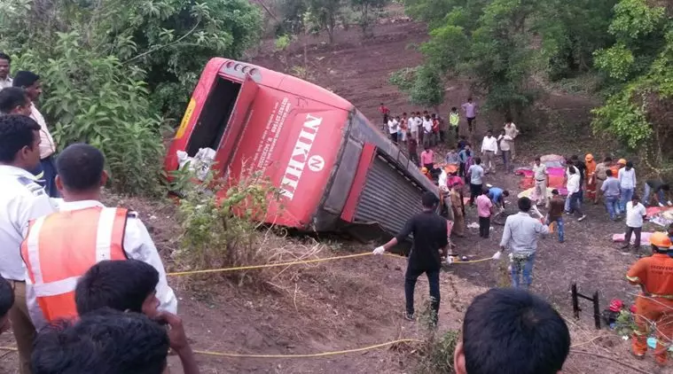 അപകടത്തെ തുടര്ന്ന് മുംബൈ - പൂനെ എക്സ്പ്രസ്വേയില് ഗതാഗതം സ്തംഭിച്ച നിലയിലാണ്. പഞ്ചറായ ടയര് മാറ്റുന്നതിനു റോഡരികില് നിര്ത്തിയിട്ടിരുന്ന കാറും സമീപത്ത് സഹായത്തിനായി നിര്ത്തിയിട്ട മറ്റൊരു സംഘത്തിന്റെ കാറിലേക്കുമാണ് സതാര ഭാഗത്തു നിന്നു വരികയായിരുന്ന ബസ് പാഞ്ഞുകയറിയത്. മുംബൈയിലേക്ക് പോകുകയായിരുന്നു ബസ്. പരിക്കേറ്റവരെ എംജിഎം ആശുപത്രിയിലും അഷ്ടവിനായക് ആശുപത്രിയിലുമായി പ്രവേശിപ്പിച്ചു. പരിക്കേറ്റവരില് ഏതാനും പേരുടെ നില ഗുരുതരമാണെന്നും മരണസംഖ്യ ഉയര്ന്നേക്കുമെന്നുമാണ് ആശുപത്രിവൃത്തങ്ങളില് നിന്നു ലഭിക്കുന്ന വിവരം.
