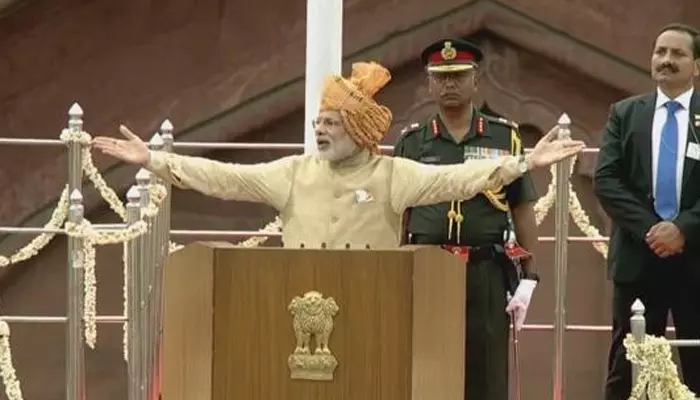 ചെങ്കോട്ടയില് പതാക ഉയര്ത്തിയ ശേഷം രാജ്യം കൈവരിച്ച നേട്ടങ്ങള് എടുത്ത് പറഞ്ഞ് കൊണ്ടായിരുന്നു പ്രധാനമന്ത്രി രാജ്യത്തെ അഭിസംബോധന ചെയ്തത്. തന്റെ സര്ക്കാര് കൈവരിച്ച നേട്ടങ്ങളും പ്രധാനമന്ത്രി എടുത്ത് പറഞ്ഞു. ഇന്ത്യയെന്ന സ്വരാജിനെ സുരാജ്യമാക്കി മാറ്റുകയാണ് ലക്ഷ്യം. സാധാരണക്കാരുടെ ജീവിതം മാറ്റി മറിക്കാനുള്ള നടപടികള് സ്വീകരിക്കുമെന്നും പ്രധാനമന്ത്രി പറഞ്ഞു