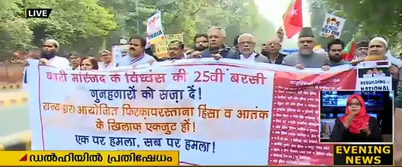 ബാബരി മസ്ജിദ് തകര്ക്കപ്പെട്ടതിന്റെ 25ആം വാര്ഷിക ദിനത്തില് രാജ്യത്തിന്റെ വിവിധ ഭാഗങ്ങളില് പ്രതിഷേധ സംഗമങ്ങള് നടന്നു. ഡല്ഹിയില് നടന്ന പ്രതിഷേധ റാലിയിലും സംഗമത്തിലും വിവിധ മുസ്ലിം - പിന്നാക്ക വിഭാഗ സംഘടനകള് പങ്കെടുത്തു. കാല് നൂറ്റാണ്ട് പിന്നിട്ടിട്ടും കുറ്റക്കാര് സ്വതന്ത്രരായി നടക്കുകയാണെന്നും അവര്ക്കെതിരെ ഉടന് നടപടി വേണമെന്നും ജമാഅത്തെ ഇസ്ലാമി അഖിലേന്ത്യാ സെക്രട്ടറി ജനറല് മുഹമ്മദ് സലീം എഞ്ചിനീയര് ആവശ്യപ്പെട്ടു.