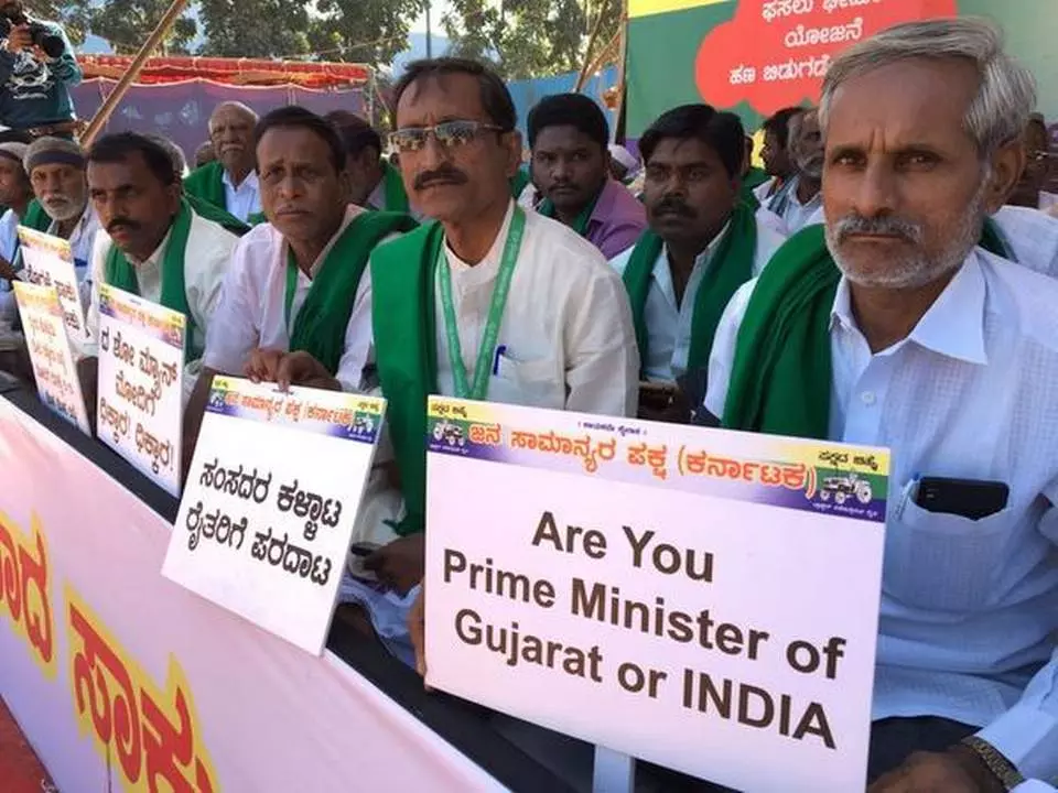 മോദിയുടെ റാലിക്കിടെ കര്ഷകരുടെ പ്രതിഷേധംമോദിയുടെ റാലിക്കിടെ കര്ഷകരുടെ പ്രതിഷേധം