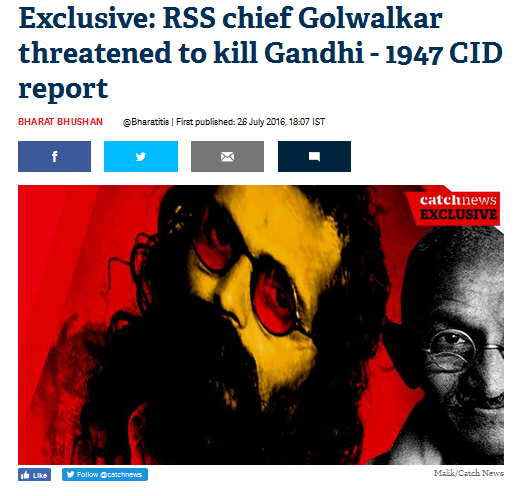 ഗാന്ധിജിയെ വധിക്കുമെന്ന് ഗോള്വാള്ക്കര് ഭീഷണിപ്പെടുത്തിയിരുന്നതായി 1947ലെ സിഐഡി റിപ്പോര്ട്ട്