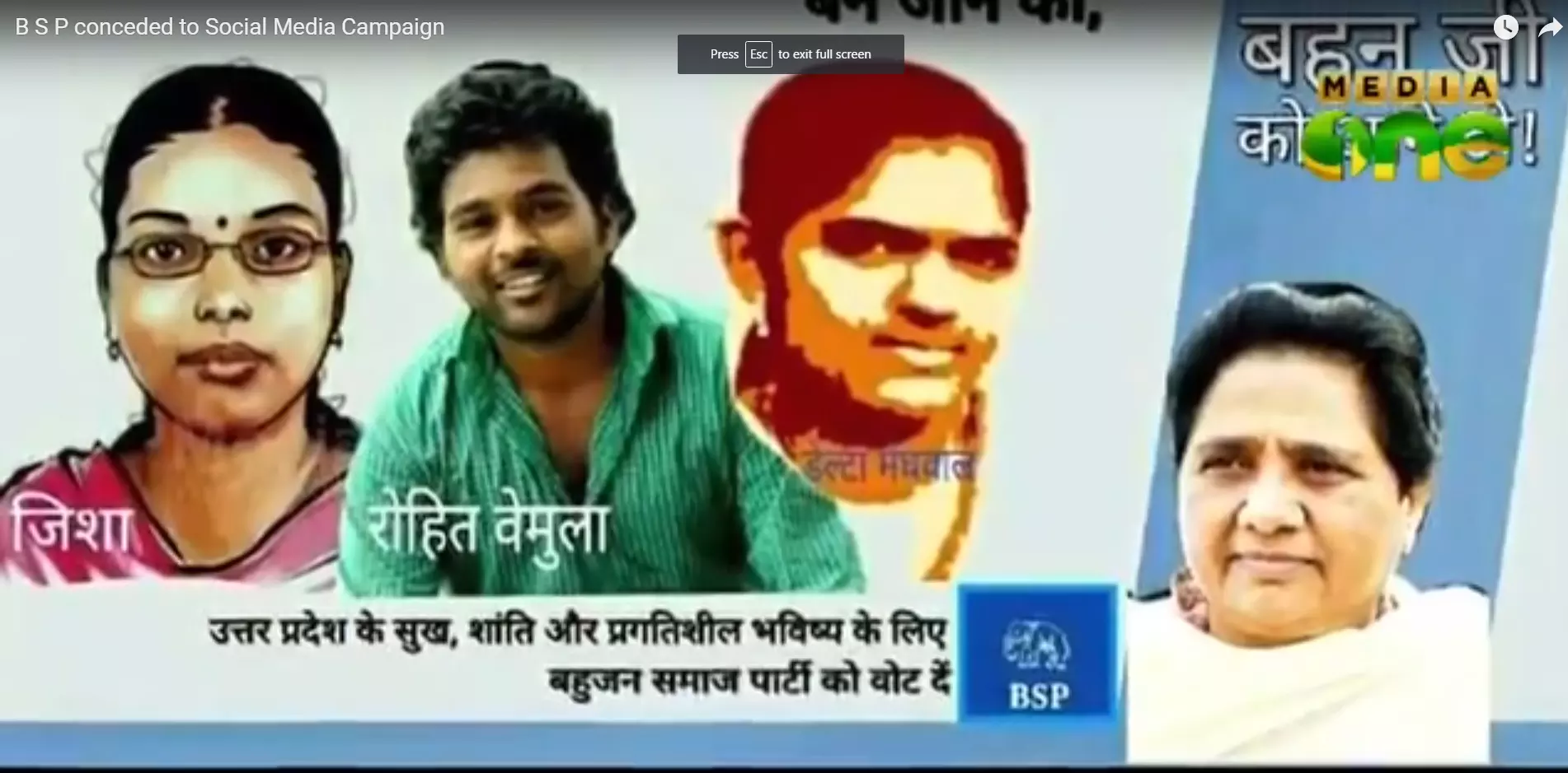 അറുപത്തി ഒന്നാം വയസ്സില് നൂതന തെരഞ്ഞെടുപ്പ് മാര്ഗ്ഗങ്ങള്ക്ക് വഴങ്ങി ബഹുജന് സമാജ്വാദി പാര്ട്ടി അധ്യക്ഷ മായാവതി. രണ്ട് പതിറ്റാണ്ടിലേറെയായി തുടരുന്ന തെരഞ്ഞെടുപ്പ് പോരാട്ടങ്ങളില് പരമ്പരാഗത പ്രചാരണ മാര്ഗങ്ങള് സ്വീകരിച്ച മായാവതി ഇത്തവണ സാമൂഹ്യ മാധ്യമങ്ങളിലേക്കും കയറുകയാണ്. രോഹിത് വെമുലയും ജിഷയുടയുമടക്കം ഭരണകൂട ഇരകളായ ദലിതരുടെ ചിത്രങ്ങളടങ്ങിയ പോസ്റ്ററുകളുമായാണ് ബിഎസ്പിയുടെ ഓണ്ലൈന് പ്രചാരണം