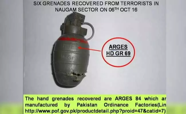 |കശ്മീരിലെ നൗഗാം സെക്ടറില് ഏറ്റുമുട്ടലിനിടെ കൊല്ലപ്പെട്ട നാലു ഭീകരരില് നിന്നു കണ്ടെടുത്ത ഗ്രനേഡുകള് പാകിസ്താന് നിര്മിതമാണെന്ന് സൈന്യം.