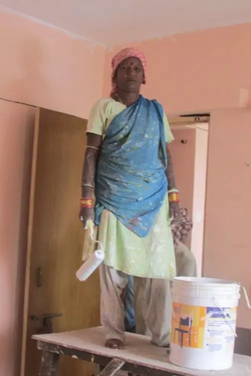ഭുവനേശ്വറിന്റെ ചുവരുകളെ പെയിന്റടിക്കുന്ന രാധരണി, മാര്ബിള് പതിക്കുന്ന സബിതഭുവനേശ്വറിന്റെ ചുവരുകളെ പെയിന്റടിക്കുന്ന രാധരണി, മാര്ബിള് പതിക്കുന്ന സബിത