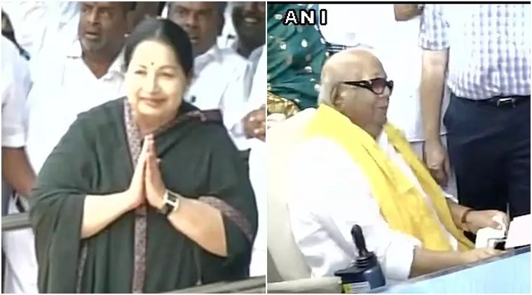 1991ല് ജയ തമിഴ്നാട് മുഖ്യമന്ത്രിയായി ആദ്യം സത്യപ്രതിജ്ഞ ചെയ്യുന്നതിന്റെ ഫോട്ടോ സഹിതമാണ് കലൈഞ്ജര് ആശംസ പോസ്റ്റ് ചെയ്തത്. സത്യപ്രതിജ്ഞ വീക്ഷിച്ച് ജയക്ക് തൊട്ടുപിറകിലായി കരുണാനിധി ഇരിപ്പുണ്ട്.