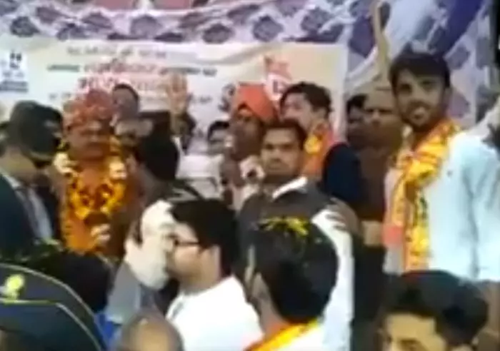#WATCH Muzaffarnagar: BJP MLA Vikram Saini says, 'jab tak kaanoon nahi banta (on population control) Hindu bhaiyon apko chhoot hai rukna mat.' (23.02.2018) pic.twitter.com/b3TqjNHh3M