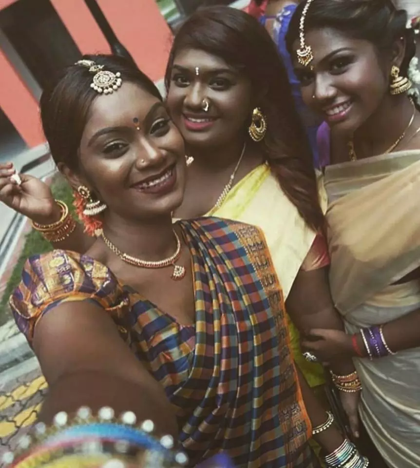|സാരിയും പരമ്പരാഗത ആഭരണങ്ങളുമണിഞ്ഞ പെണ്കുട്ടികളാണ് ചിത്രത്തില്