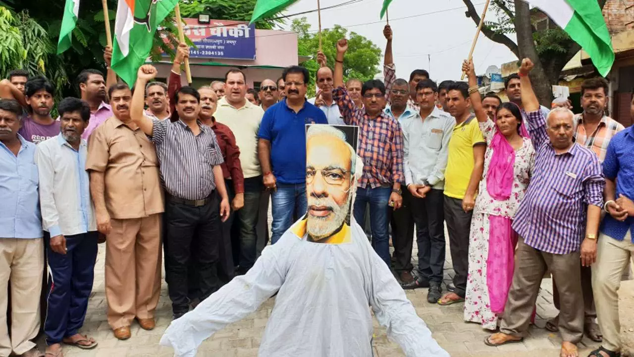 ഇന്ധന വിലവർധന: ജയ്പ്പൂരിൽ കോൺഗ്രസ് പ്രവർത്തകർ പ്രധാനമന്ത്രിയുടെ കോലം കത്തിച്ചു