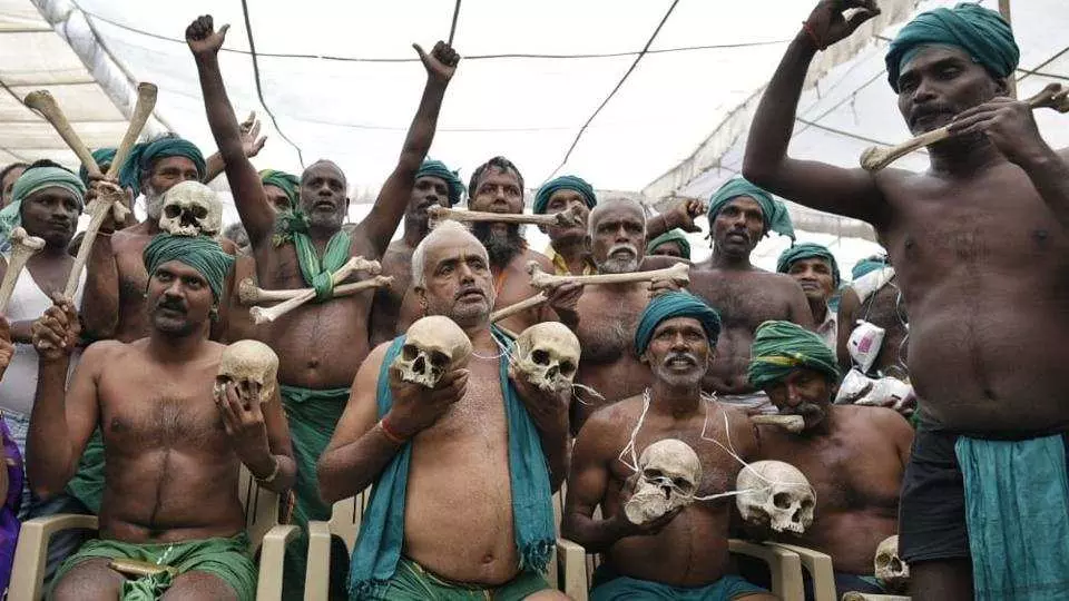 ആത്മഹത്യ ചെയ്ത കര്ഷകരുടെ തലയോട്ടിയുമായി കര്ഷക മാര്ച്ച്