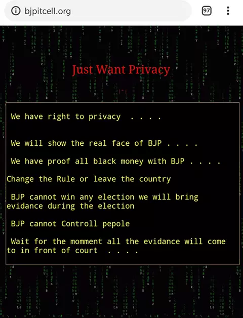 ബി.ജെ.പി ഐ.ടി സെല് വെബ്സൈറ്റ് ഹാക്ക് ചെയ്തു